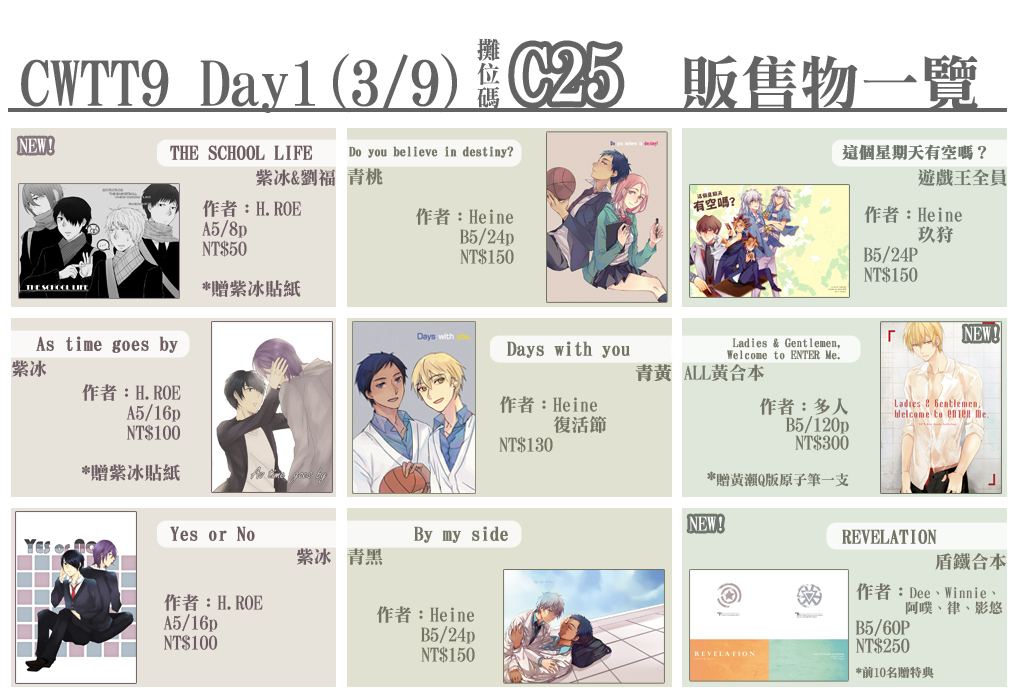 然後第一本紫冰Yes or No剩五本左右所以就不帶過去了我CWTT9擺XD若是有台北場的朋友需要可以在這邊留言,我可以帶上去+預留~